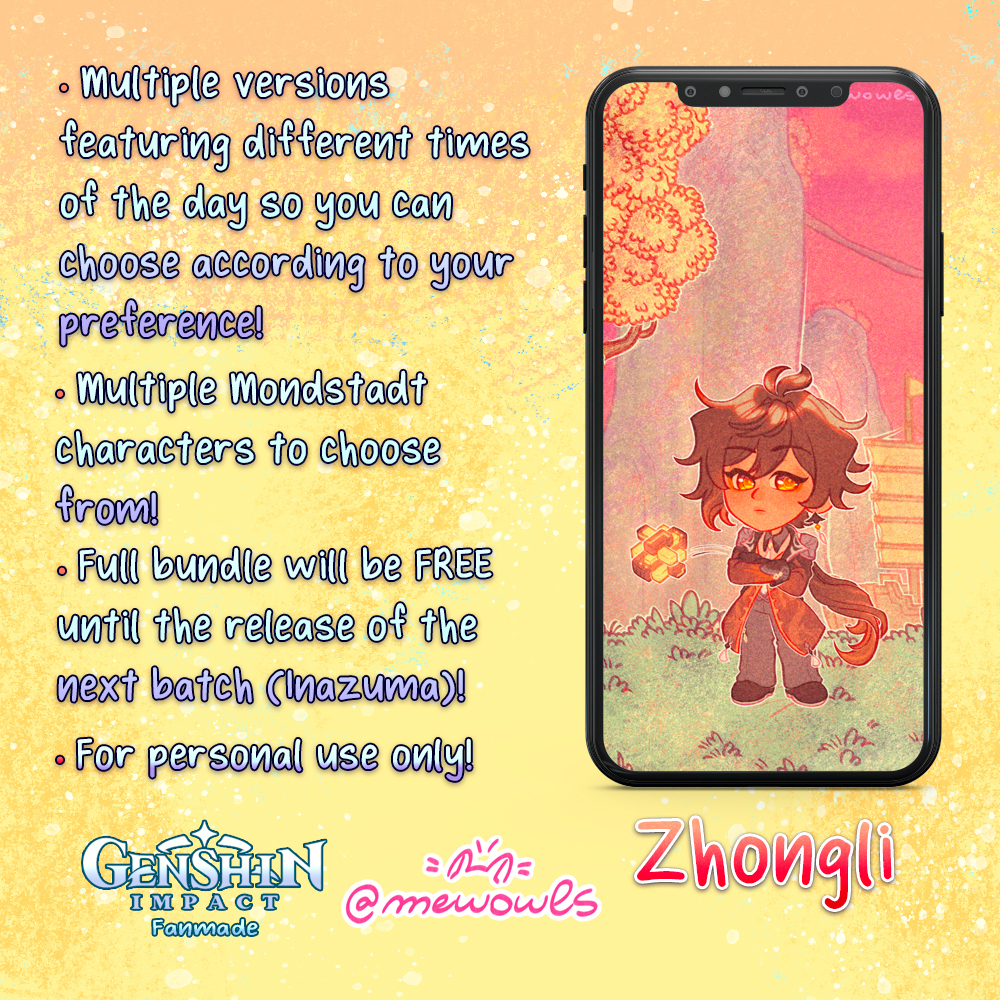 A hand-drawn wallpaper pack featuring most asked Genshin Impact Liyue characters, optimised for high resolution displays, mobile devices and multiple monitor setups!