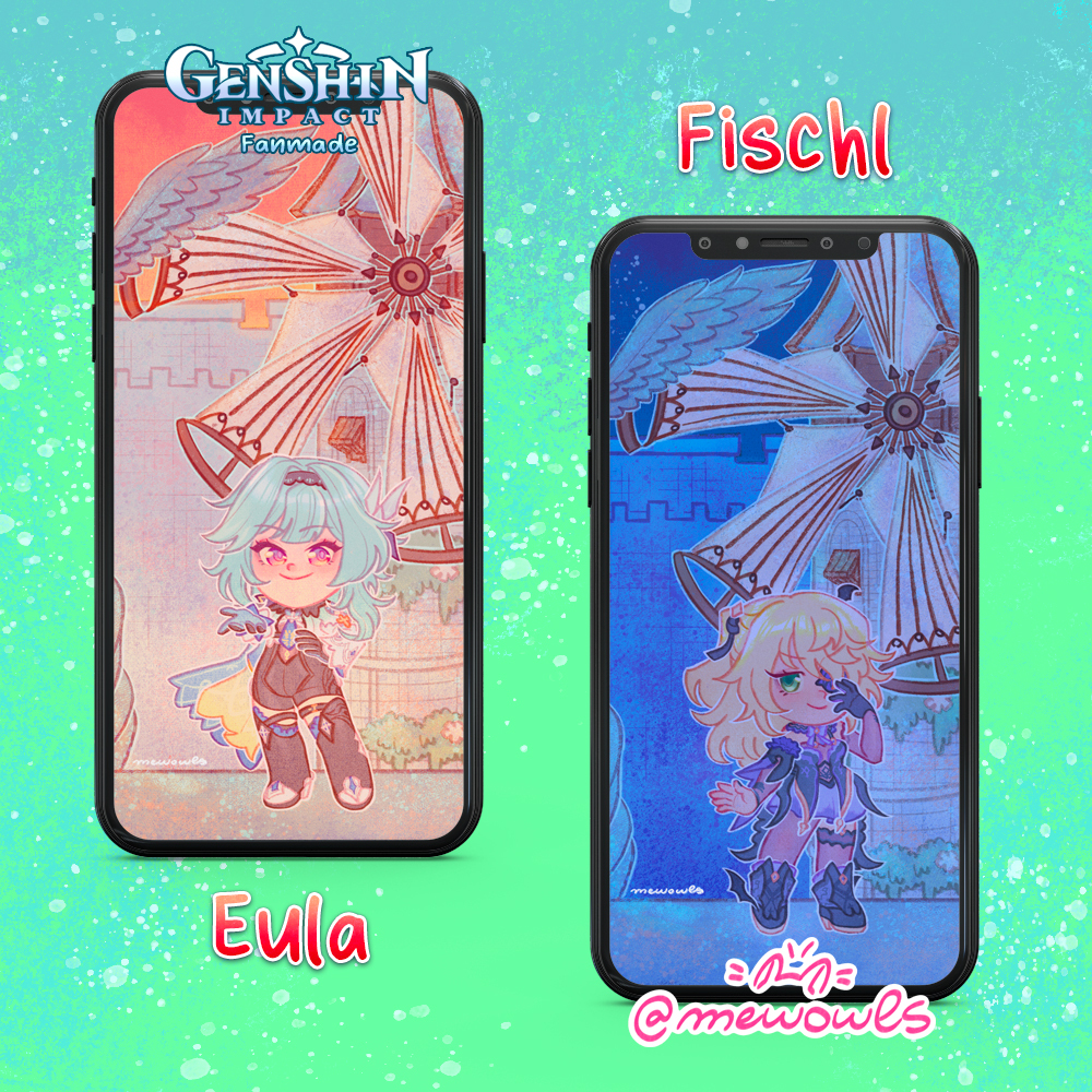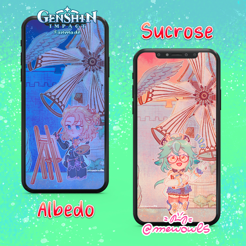 A hand-drawn wallpaper pack featuring most asked Genshin Impact Mondstadt characters, optimised for high resolution displays, mobile devices and multiple monitor setups!